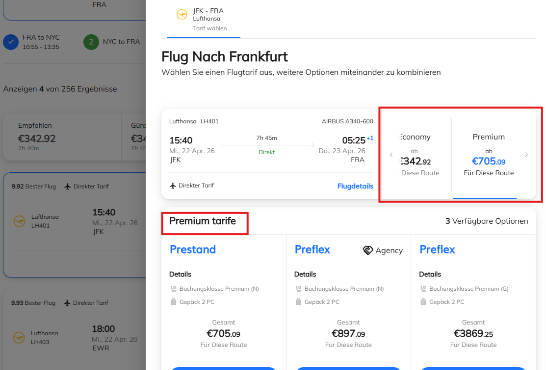 Wählen Sie hier einen anderen Tarif und/oder eine andere Reiseklasse (z. B. Premium Economy Class).